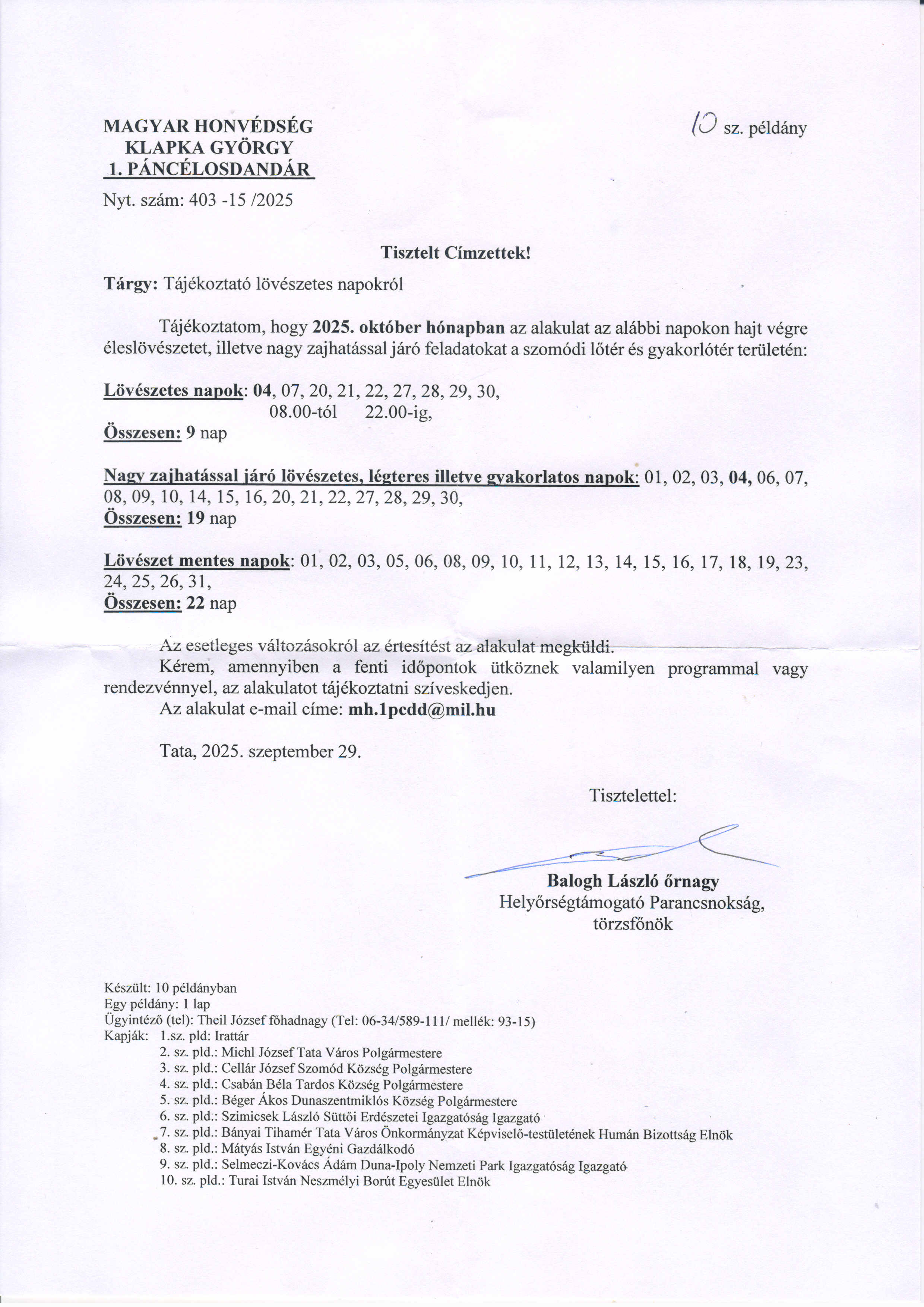 A kijelölt útvonal közelében található a tatai MH 25. Klapka György Lövészdandár helyőrségi lőtere.